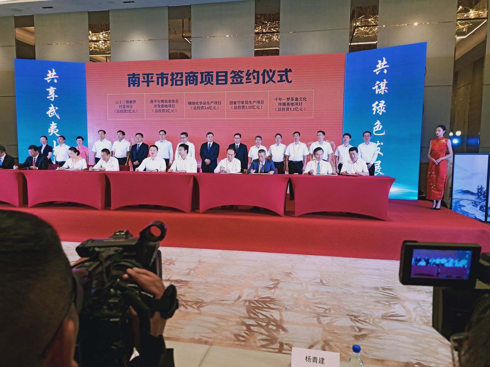 借助夏洽會(huì)平臺(tái),我公司受建陽(yáng)區(qū)人民政府邀請(qǐng),于2019年9月8日參加南平市在廈門舉行投資說(shuō)明會(huì)暨招商項(xiàng)目簽約儀式。南平市委書(shū)記袁毅在會(huì)上致辭,我司董事長(zhǎng)陳建華在會(huì)上簽約《金石氟業(yè)含氟精細(xì)化學(xué)品生產(chǎn)項(xiàng)目》,項(xiàng)目總投資2.16億元,項(xiàng)目經(jīng)濟(jì)社會(huì)效益年新增產(chǎn)值5億元,預(yù)計(jì)新增稅收3000萬(wàn)元,新增就業(yè)崗位150個(gè)。