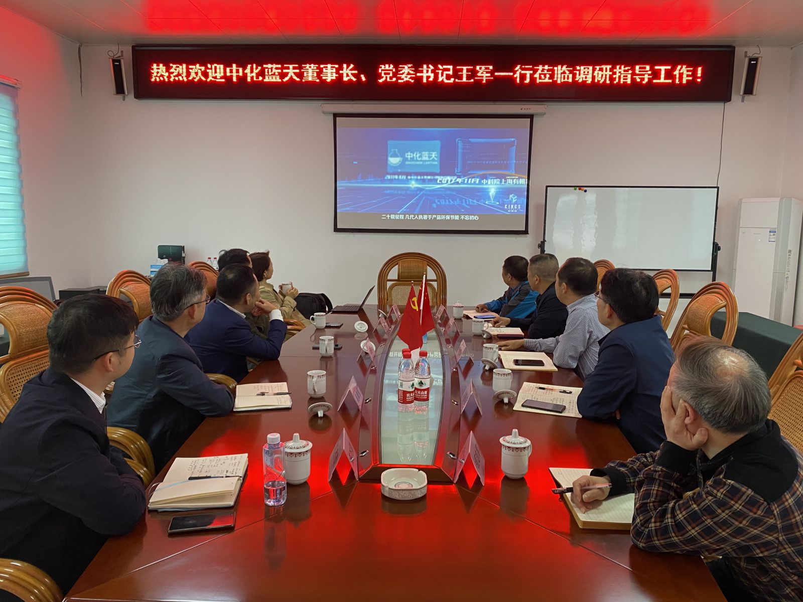 2021年11月3日,公司股東中化藍天董事長兼黨委書記王軍、副總經(jīng)理吳康慧等一行5人蒞臨我司調(diào)研指導工作。金石氟業(yè)董事長總經(jīng)理陳建華,金石礦業(yè)總經(jīng)理李仁輝及中化藍天派駐領導洪惠能、程志軍等陪同參加。